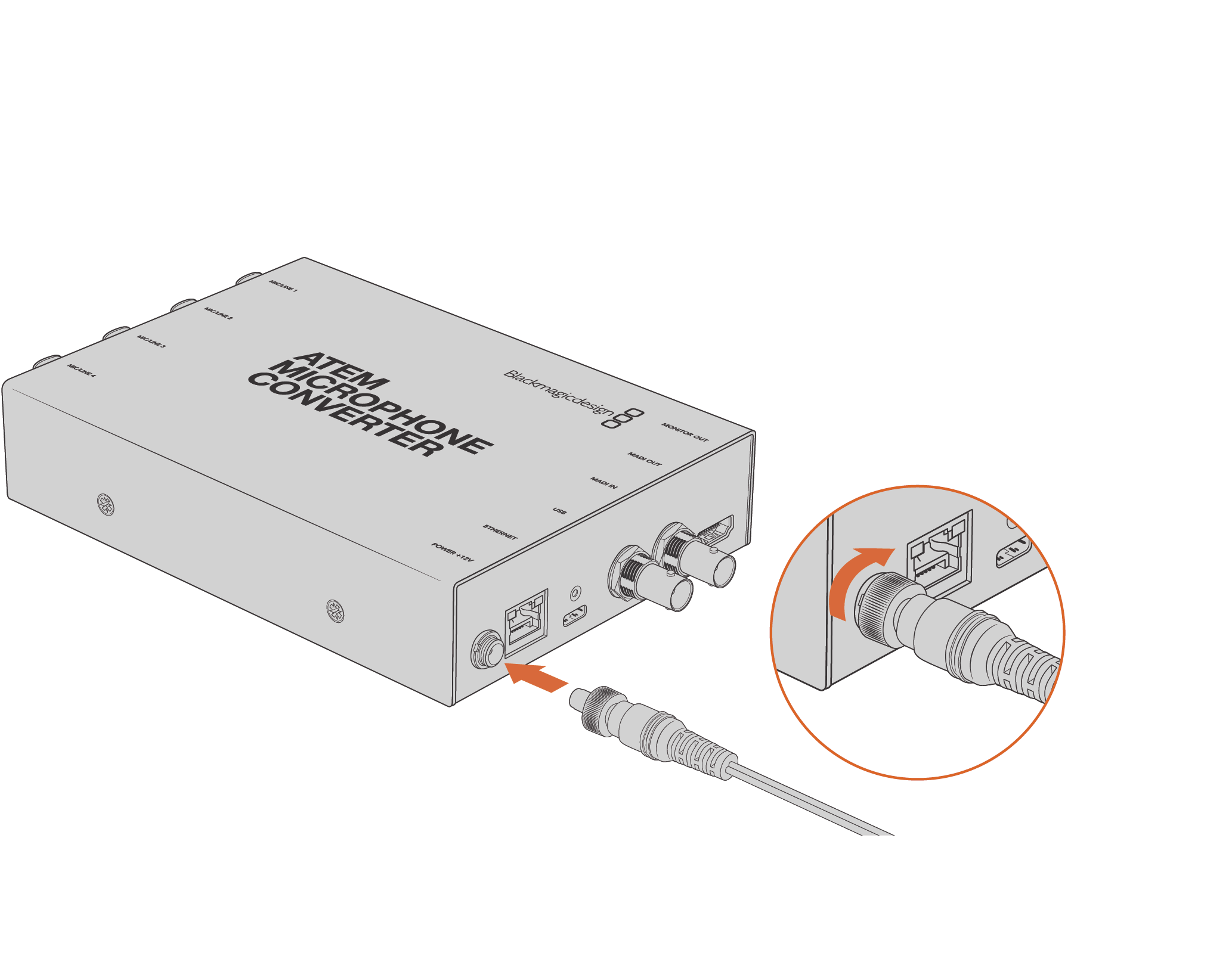 Connect power to your ATEM Microphone Converter using the supplied power adaptor