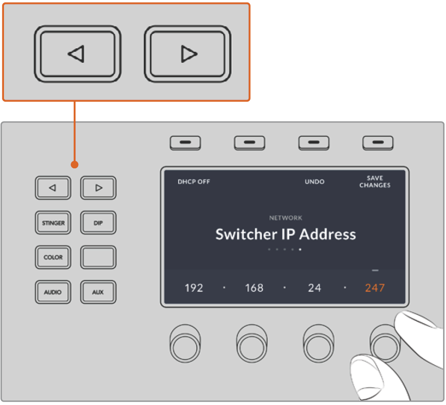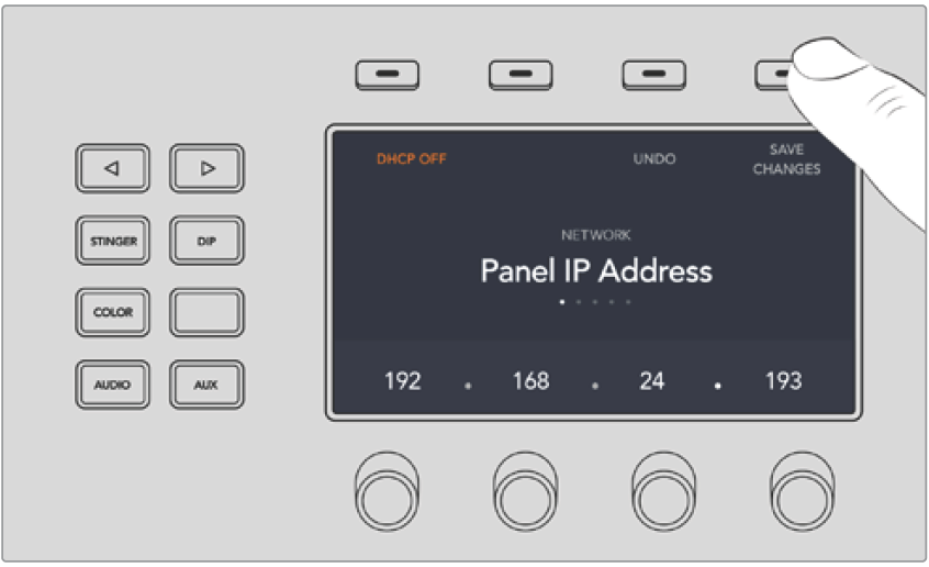Now use the corresponding LCD soft control knobs to set the correct IP address for your switcher.