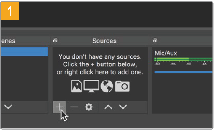 Launch Open Broadcaster and click on the plus symbol in the ‘sources’ box.