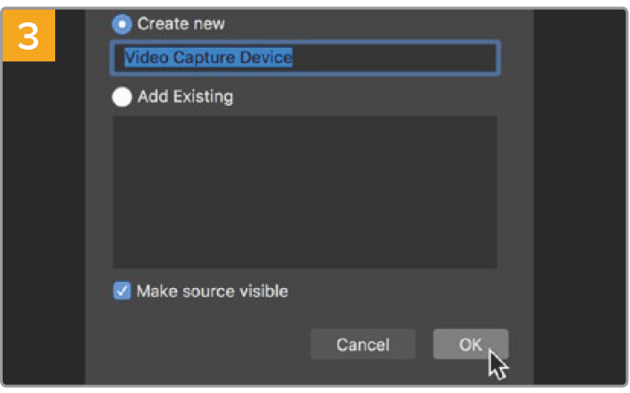 In the device menu, select Blackmagic Design and click ‘OK’.