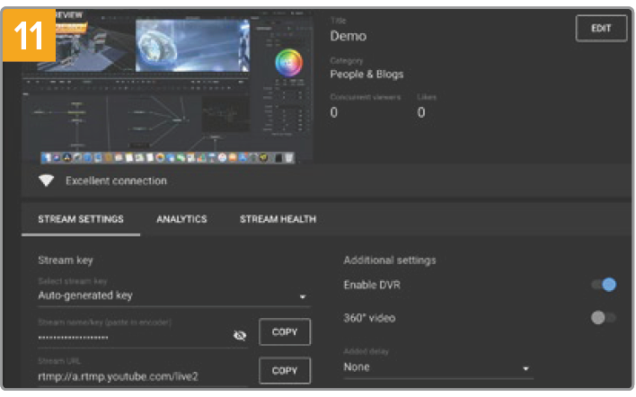 You are now broadcasting live on YouTube with Open Broadcaster. When your broadcast is finished and you have pressed the fade to black button on ATEM Mini, you can end the stream by clicking ‘end stream’.