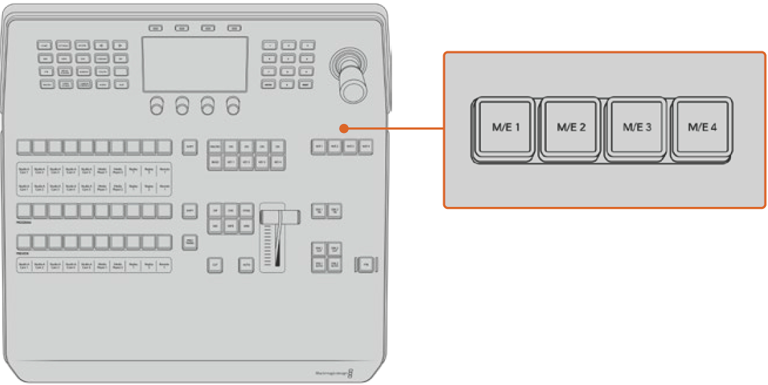 Press the M/E buttons numbered 1 to 4 to select an M/E panel to control