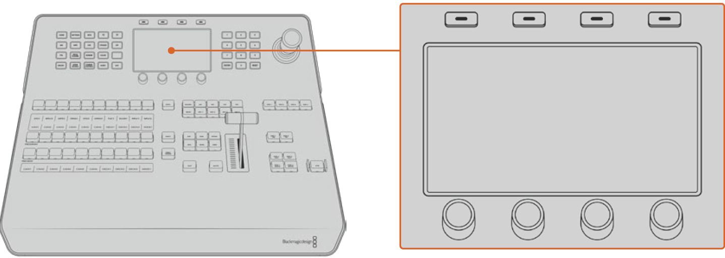 ATEM 1 M/E Advanced Panel shares the same control panel layout as the software control panel, plus a large LCD with soft control knobs and buttons which lets you adjust settings dynamically as you control your switcher. This is a fast and convenient way of working with your panel.