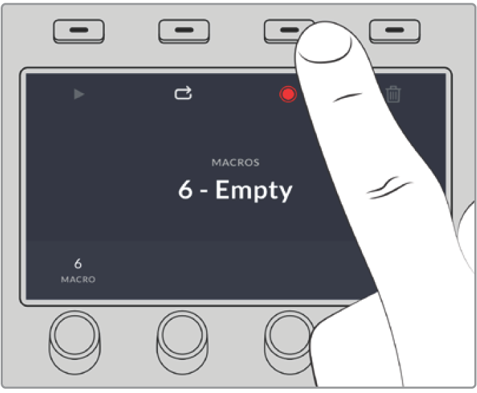 Using the ‘macro’ knob under the LCD, select the macro slot you want to record to. For this example, select ‘slot 6 - Empty’.
