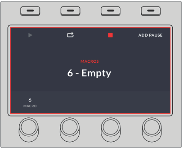 📘TIP There are ten macro buttons in the source select row, so if you have macros recorded to slots greater than ten, you can access these by opening the macro settings in the LCD menu and changing the macro group using the control knob.