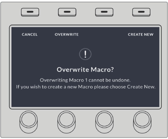 If you want to record over a previously recorded macro, or if you made a mistake and want to start recording the macro again, press the record button and confirm the overwrite when prompted