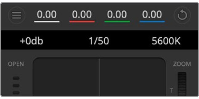 Hovering your mouse pointer over the gain, shutter speed and white balance indicators reveal arrows you can click on to adjust their respective settings.