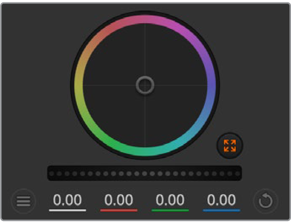 Use the master wheel below the color wheel to make contrast adjustments to all YRGB channels at once, or luminance only for each lift, gamma or gain setting.