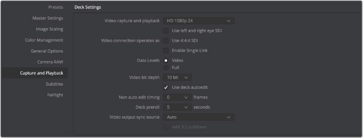 Launch DaVinci Resolve. From the ‘preferences’ menu, select the ‘video and audio I/O’ tab and select your Blackmagic Design hardware from the ‘for capture and playback use’ option. Save your preferences and restart DaVinci Resolve to apply your changes.