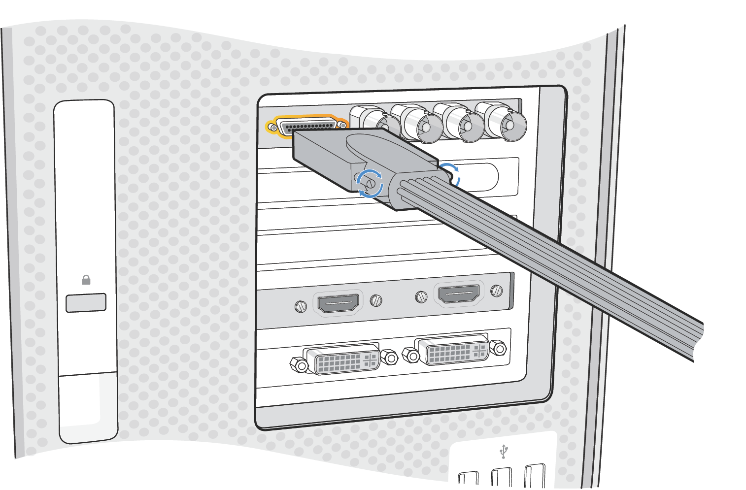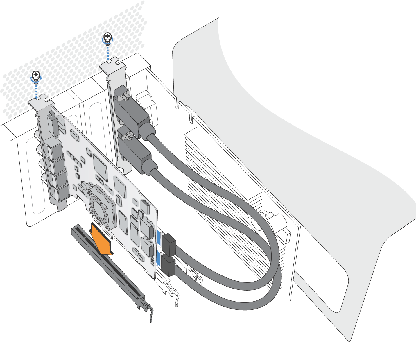 Install a Blackmagic Design PCIe card in a spare PCIe slot. If your card includes an HDMI bracket, it can be installed in any spare PCIe mount and connects to the rear of the card with the supplied HDMI cables.