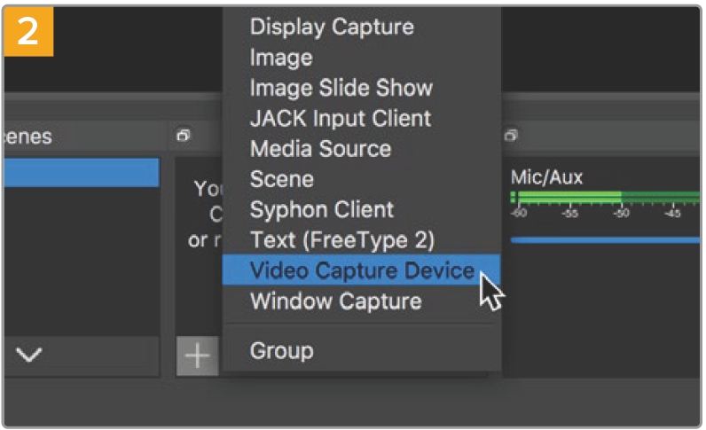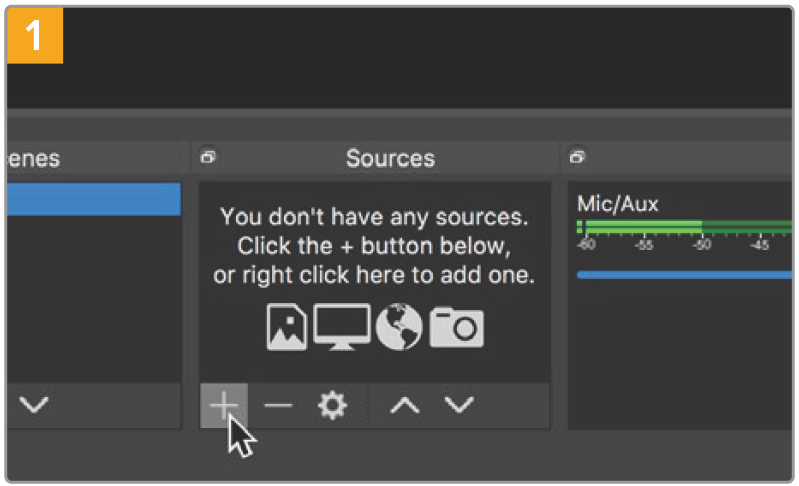 Launch Open Broadcaster and click on the plus symbol in the ‘sources’ box.