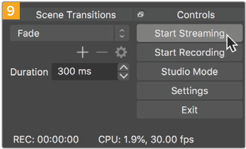 To connect Open Broadcaster’s broadcast link to YouTube, click ‘start streaming’ in the bottom right corner of the screen. This establishes the link to YouTube from Open Broadcaster and from here everything will now be set using YouTube Live.