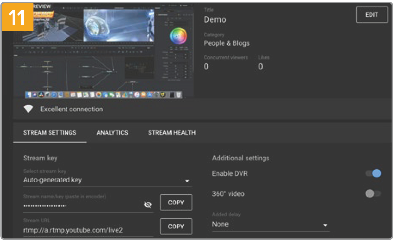 Below is a demonstration of how to set up Open Broadcaster to stream the webcam output from your HyperDeck Studio using YouTube Live as the streaming service.