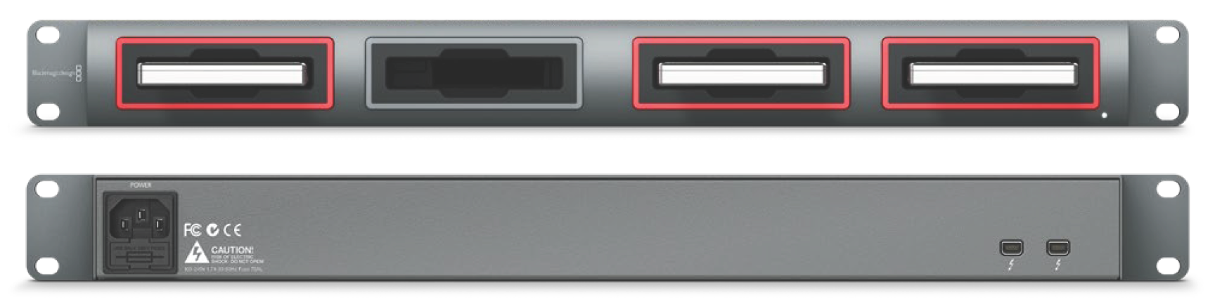 Blackmagic MultiDock uses USB 3.1 and Thunderbolt™ 2 technology, which provides a super fast connection to your computer up to 10 and 20Gb/s respectively. Each drive bay has a completely independent SATA 3 disk interface for high performance. Blackmagic MultiDock 10G can even be configured as two independent docks so you can access the drives from two separate pieces of equipment.