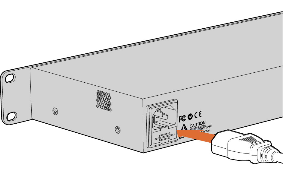 Connect your power supply to Blackmagic MultiDock using a standard IEC power cable and connector.
