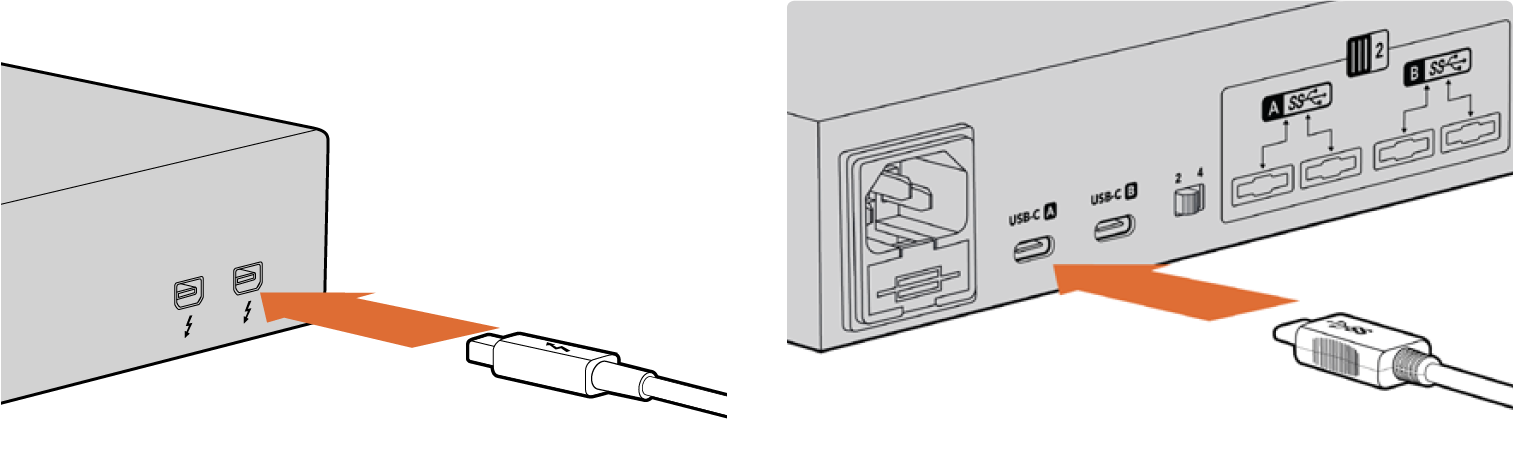 Connect Blackmagic MultiDock to your Mac or Windows PC using a Thunderbolt or USB-C cable