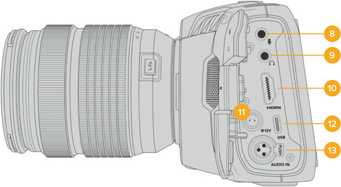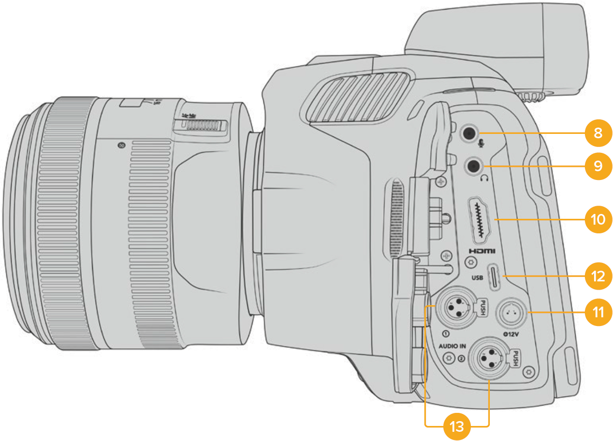 Ports on the left side of Blackmagic Pocket Cinema Camera 6K Pro and 6K G2