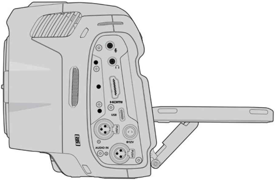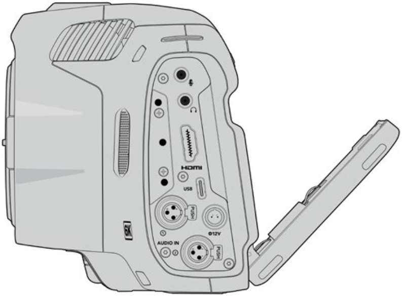 Ports on the left side of Blackmagic Pocket Cinema Camera 4K