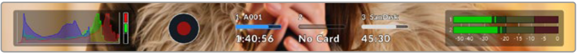 Storage indicators at the bottom of the LCD touchscreen show the amount of recording time remaining or if the SD card is locked