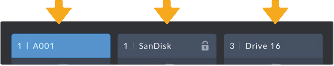 📘NOTE If your camera is connected to a drive hub, such as a Blackmagic MultiDock, the drive list will display all the SSD drives available to your camera. To select the drive you want to record to, tap the drive you want, then tap the ‘use drive’ button.