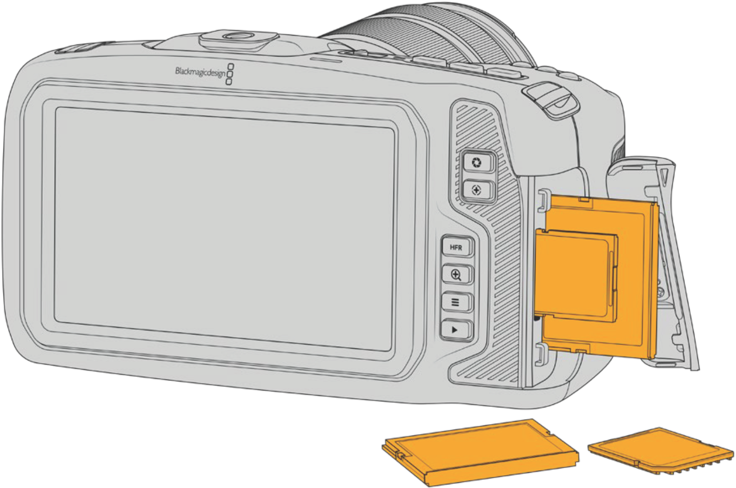Your Blackmagic Pocket Cinema Camera uses standard SD cards, faster UHS-II SD cards or CFast 2.0 cards to record video.