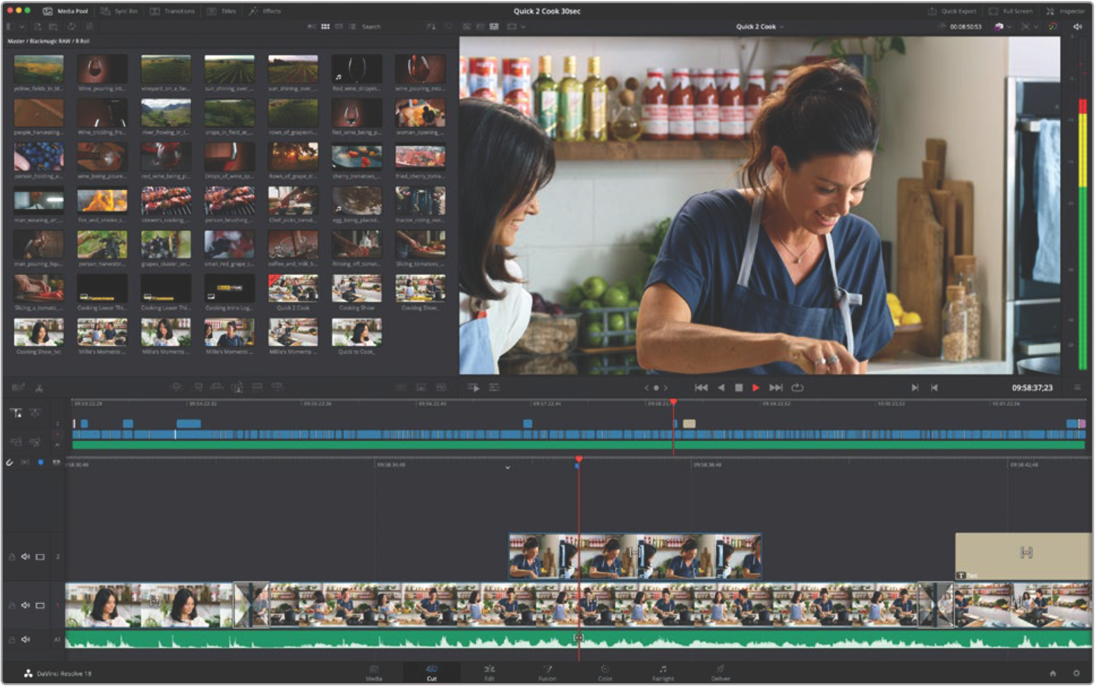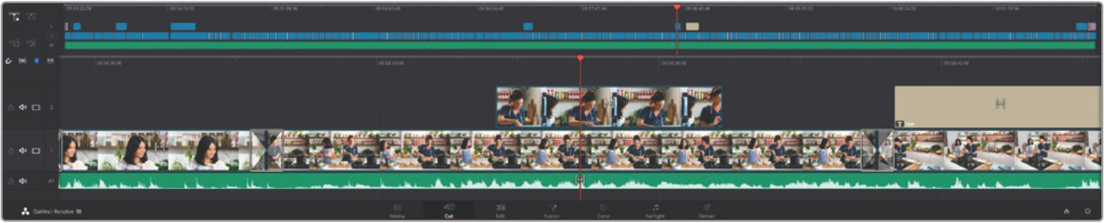 The ‘cut’ page gives you a fast, dynamic editing workflow that lets you quickly assemble, trim and edit clips efficiently.