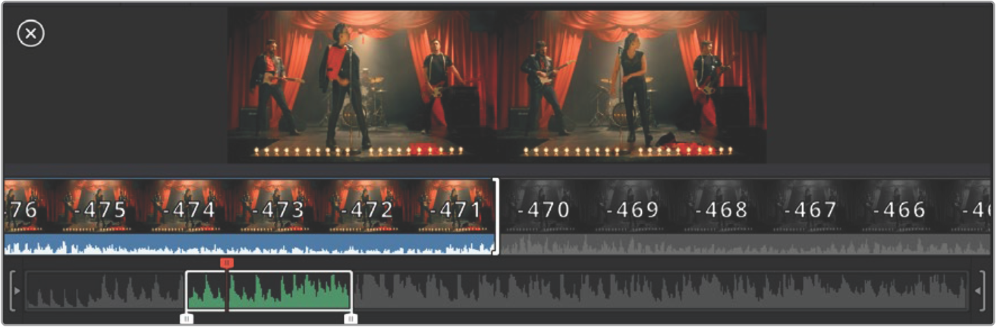 The timeline of the cut page, comprising the upper timeline and the zoomed in timeline below