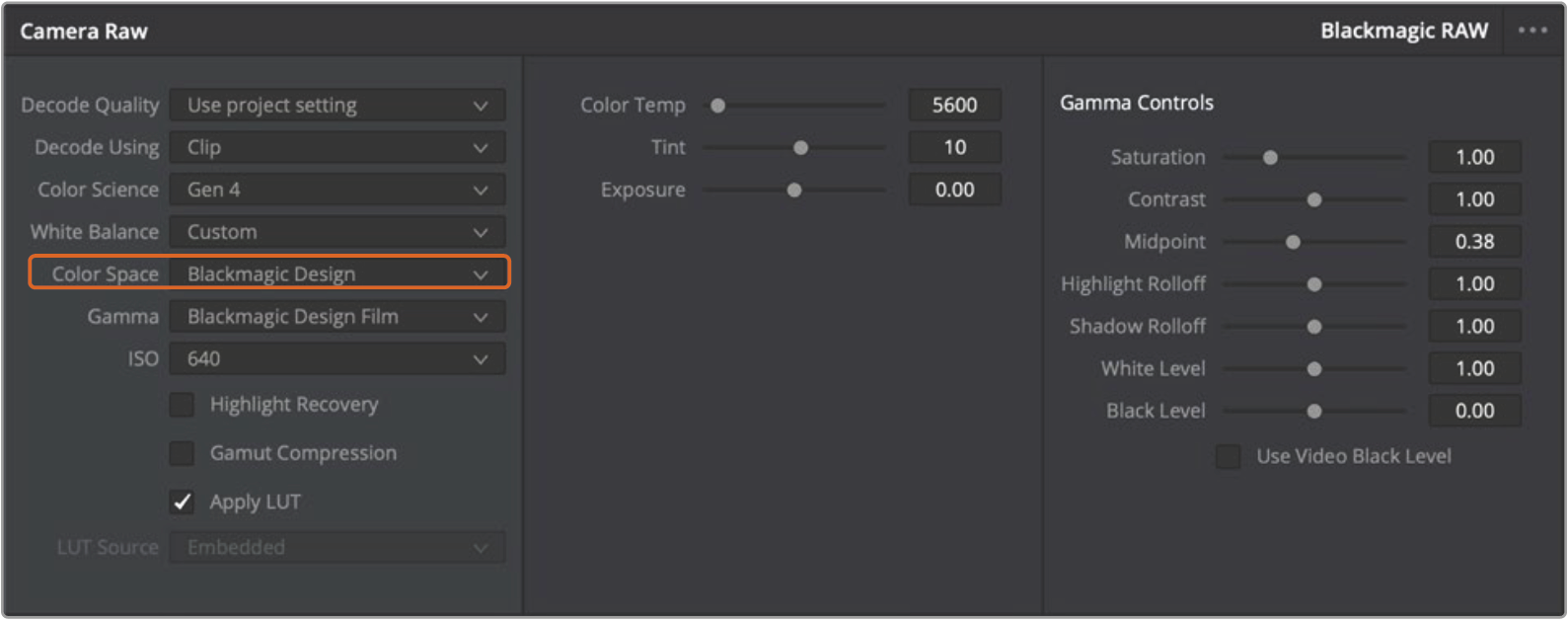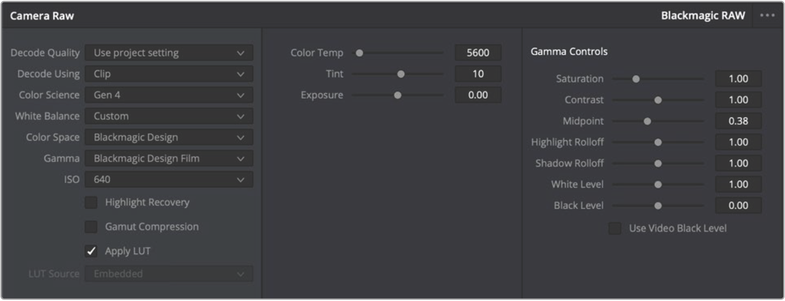 📘TIP It is a good practice to adjust the Blackmagic RAW settings for your clips on the ‘color’ page before you start color grading.