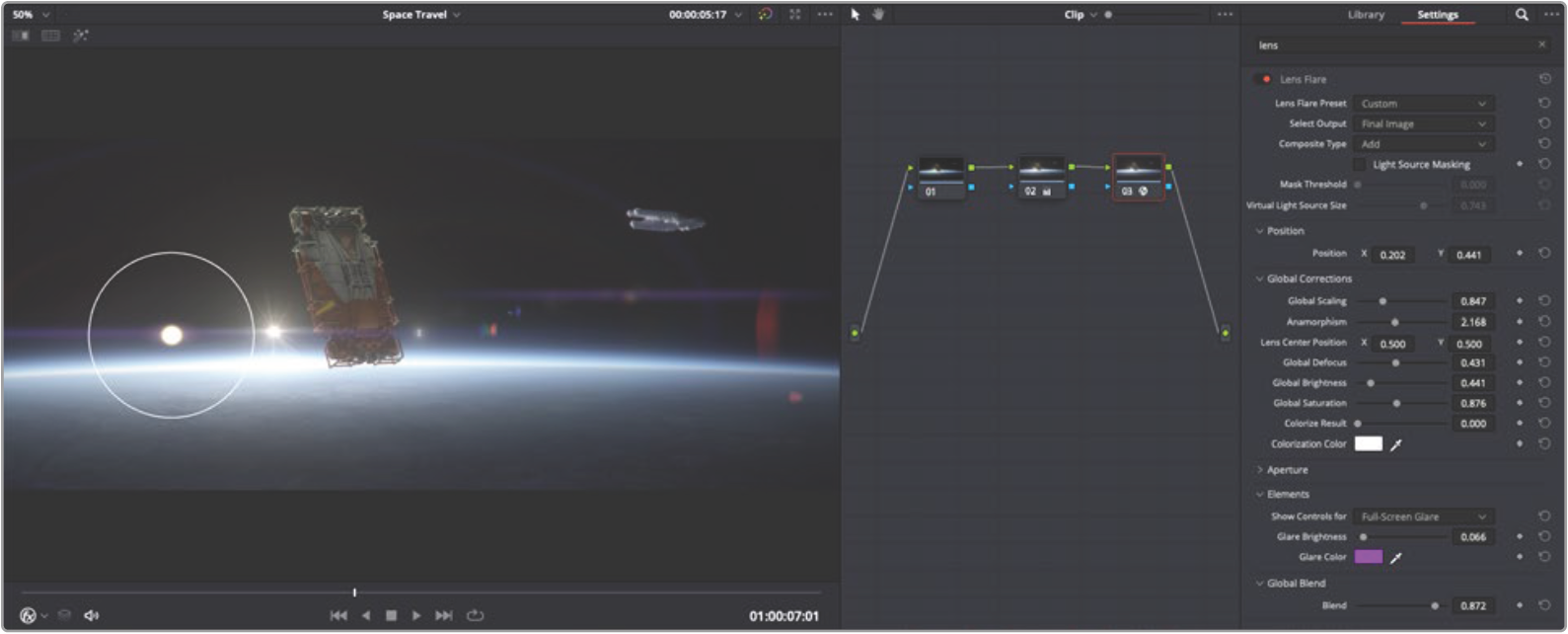 There are different parameters and settings you can adjust for every node depending on its task, from sizing and center positions to changing the number of particles in an emitter node. Setting keyframes and changing the settings over time will animate the effect.