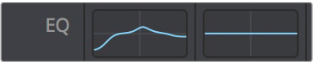 The EQ section in the mixer panel indicating an EQ curve has been applied to track one