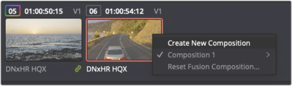 📘TIP ResolveFX or OFX plug-ins applied to clips in the cut or edit pages are not applied in the Fusion page. This is because Fusion effects occur prior to color correction and OFX/ResolveFX processing. If you want OFX applied before Fusion effects, right click the clip in the edit page and select ‘new fusion clip’ before clicking on the Fusion page.
