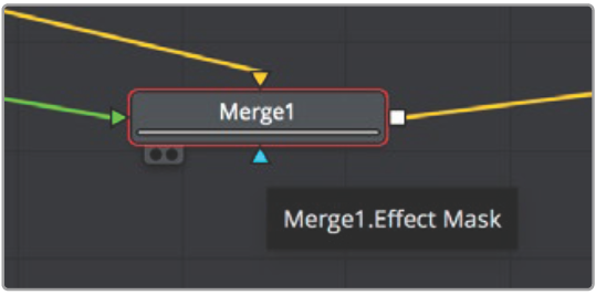 Some tools have multiple inputs and outputs you can connect to other nodes. The merge node, for example, lets you attach a foreground input, background input, and a mask input for mattes or keys.