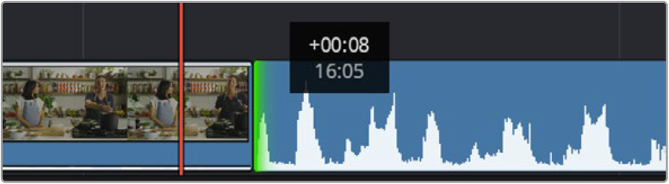 Audio trim view helps you make accurate audio edits by expanding the audio waveform in the timeline. This is useful if you’re editing a dialogue scene or a music clip and makes it easy to find an edit point between words or beats.