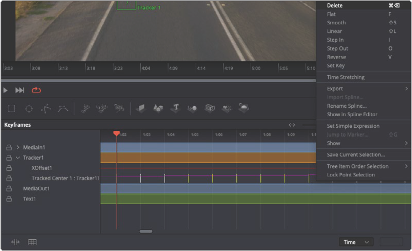 For some shots you might want to remove track points after tracking, such as when the object you are tracking disappears off the screen. The keyframe editor makes this a very simple process.