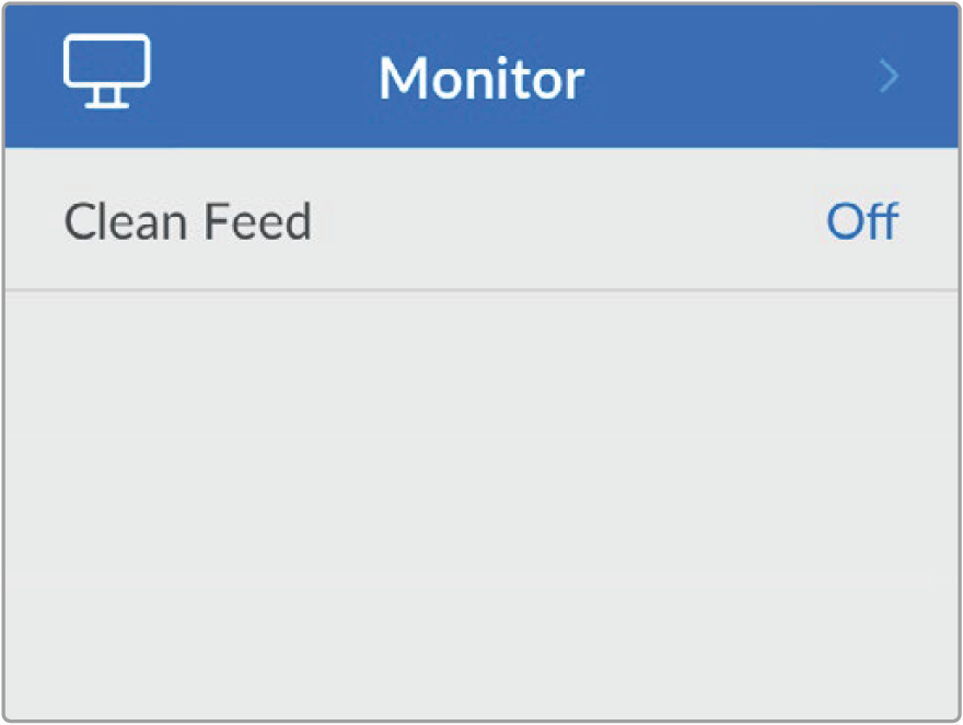 Setting clean feed to ‘on’ will remove the status text from the monitor output so only the source image is visible, for example the camera image or return feeds. For more information on the monitor output, refer to the ‘using the monitor output’ section later in this manual.
