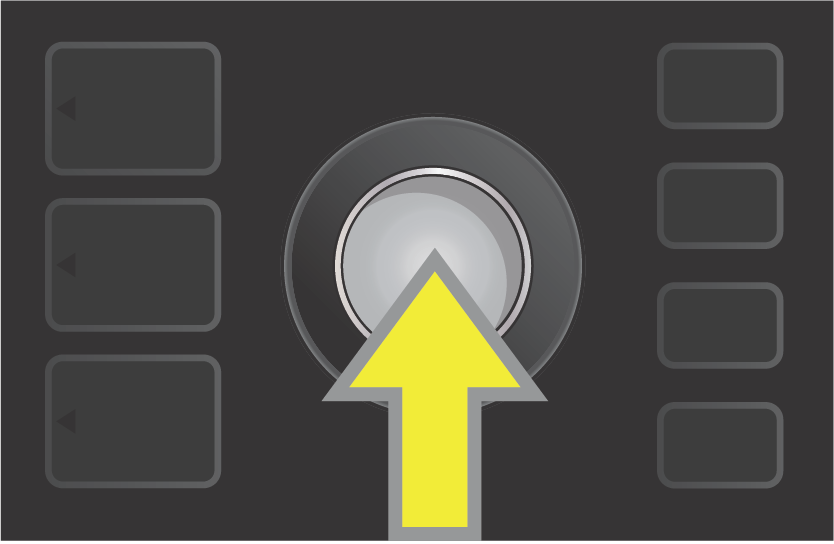 As noted in the introduction, Mustang GTX users should check regularly for firmware updates that improve and enhance the Mustang GTX experience. To perform a Mustang GTX firmware update, put the amp in WiFi update mode by pressing and holding the ENCODER for five seconds (yellow arrow in illustration below) while turning the amplifier on.
