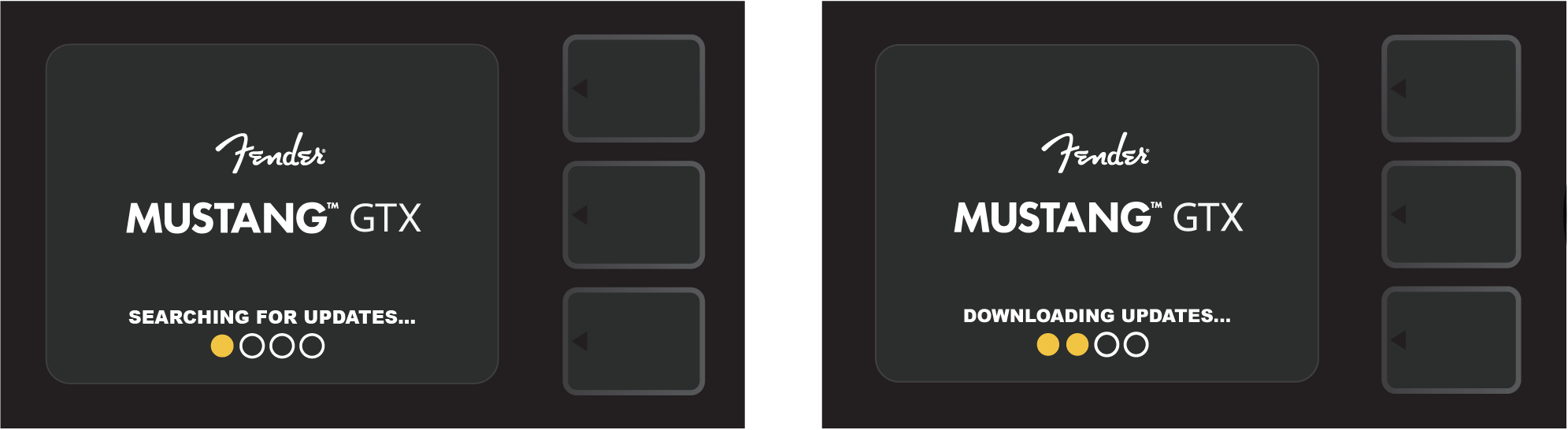 The DISPLAY WINDOW will then indicate that Mustang GTX is searching for the latest firmware update, followed by indication that the firmware update is downloading (see illustrations below).