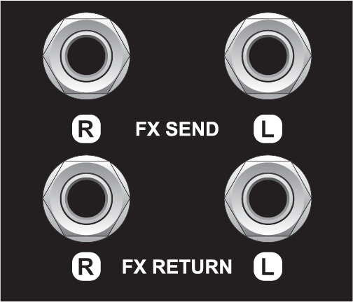 Close-up detail of rear-panel right and left FX send/return jacks.