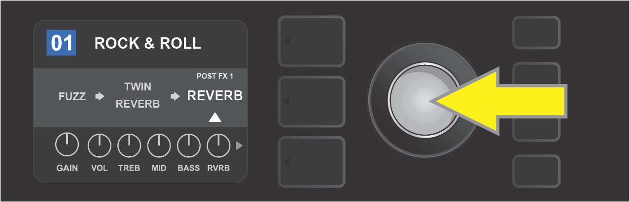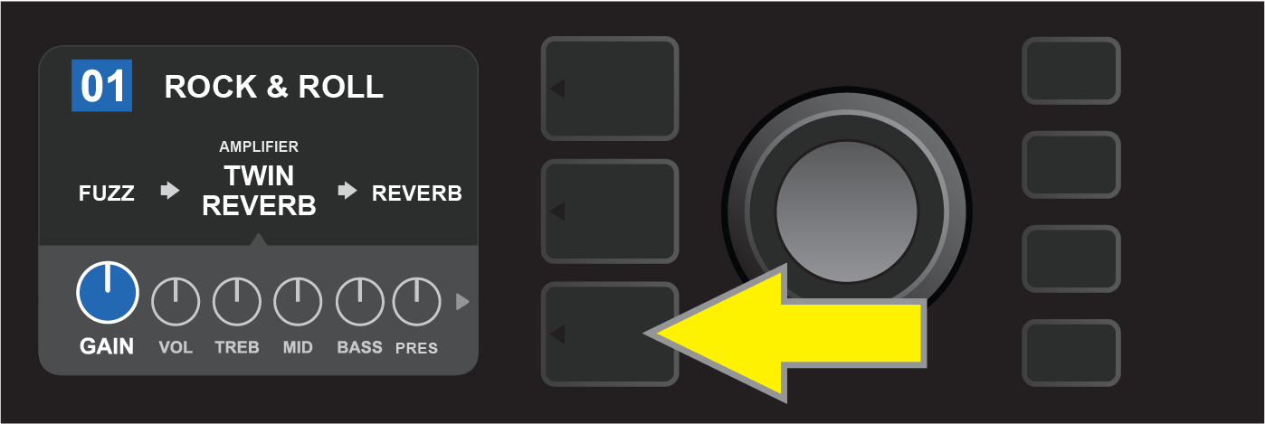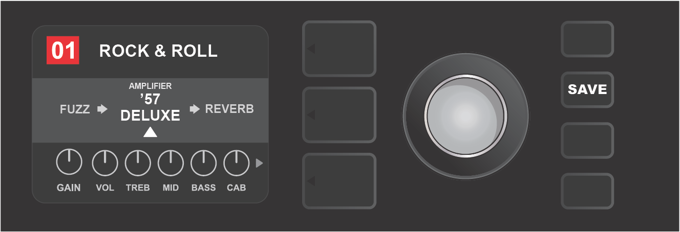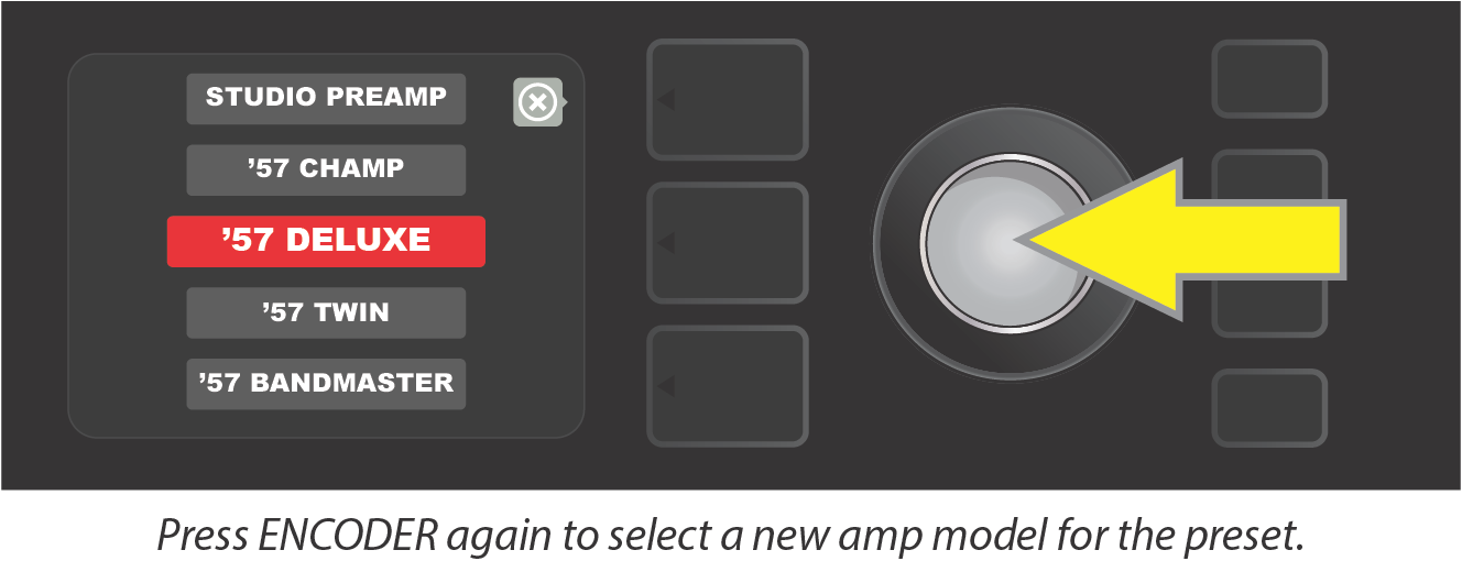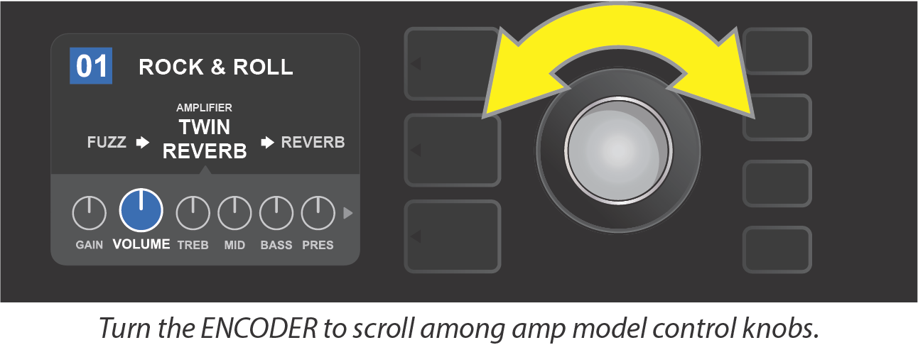 Turn ENCODER to scroll through menu of amp models.