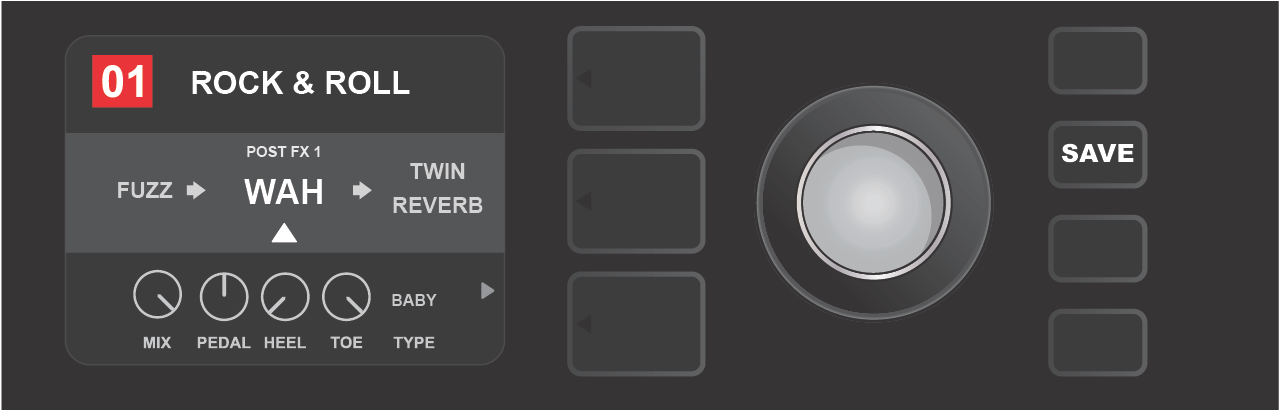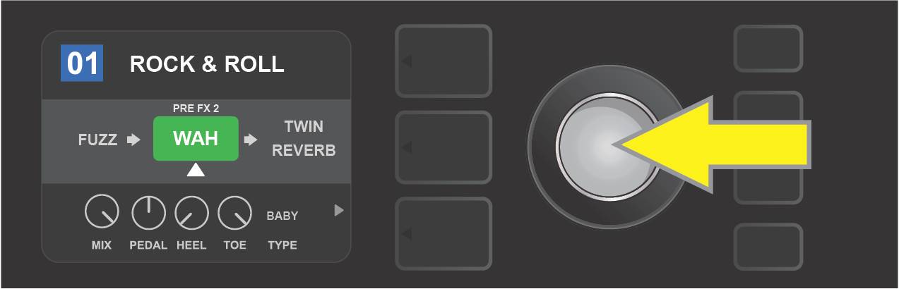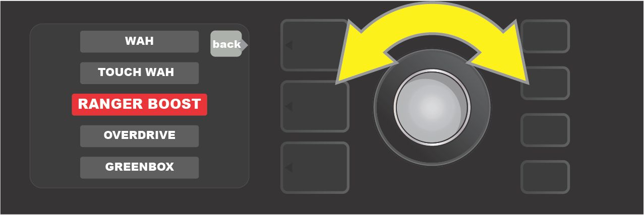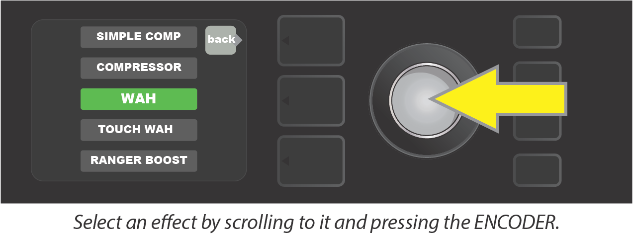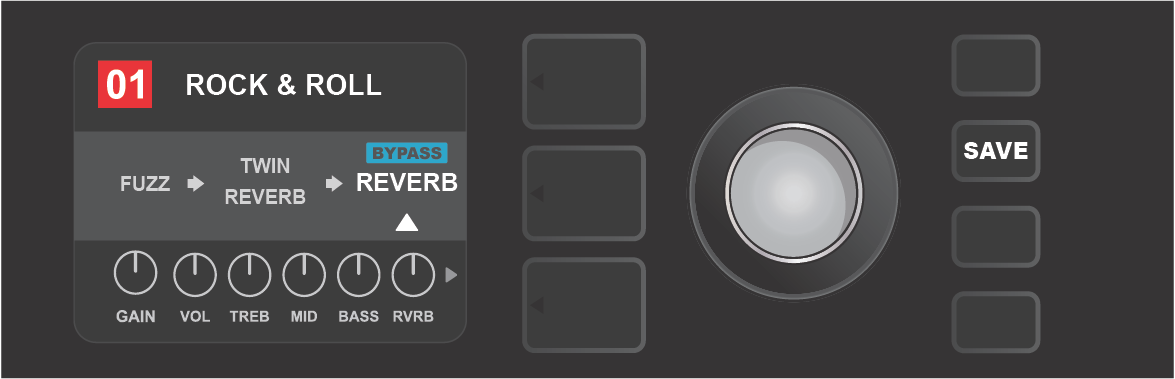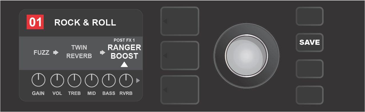 Turn ENCODER to scroll through menu of amp models.