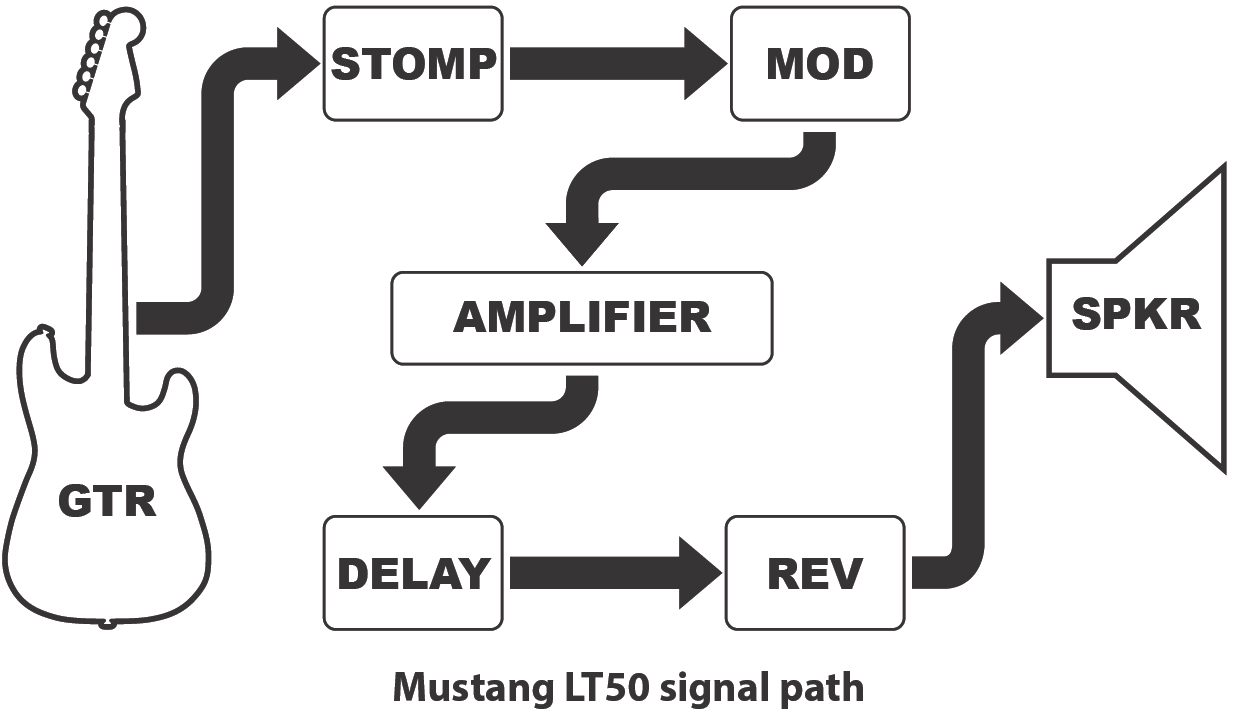 This expanded owner’s manual is a thorough user’s guide to the features and functions of the Mustang LT50 amplifier.