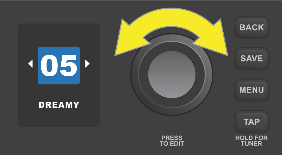 To scroll through presets, turn the ENCODER; whichever preset is displayed becomes active: