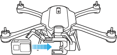 Open the harness and insert a camera (sold separately, for some Karma bundles). Note: Although the Karma battery powers both the drone and the camera, the camera must contain a battery so that Karma is properly balanced.