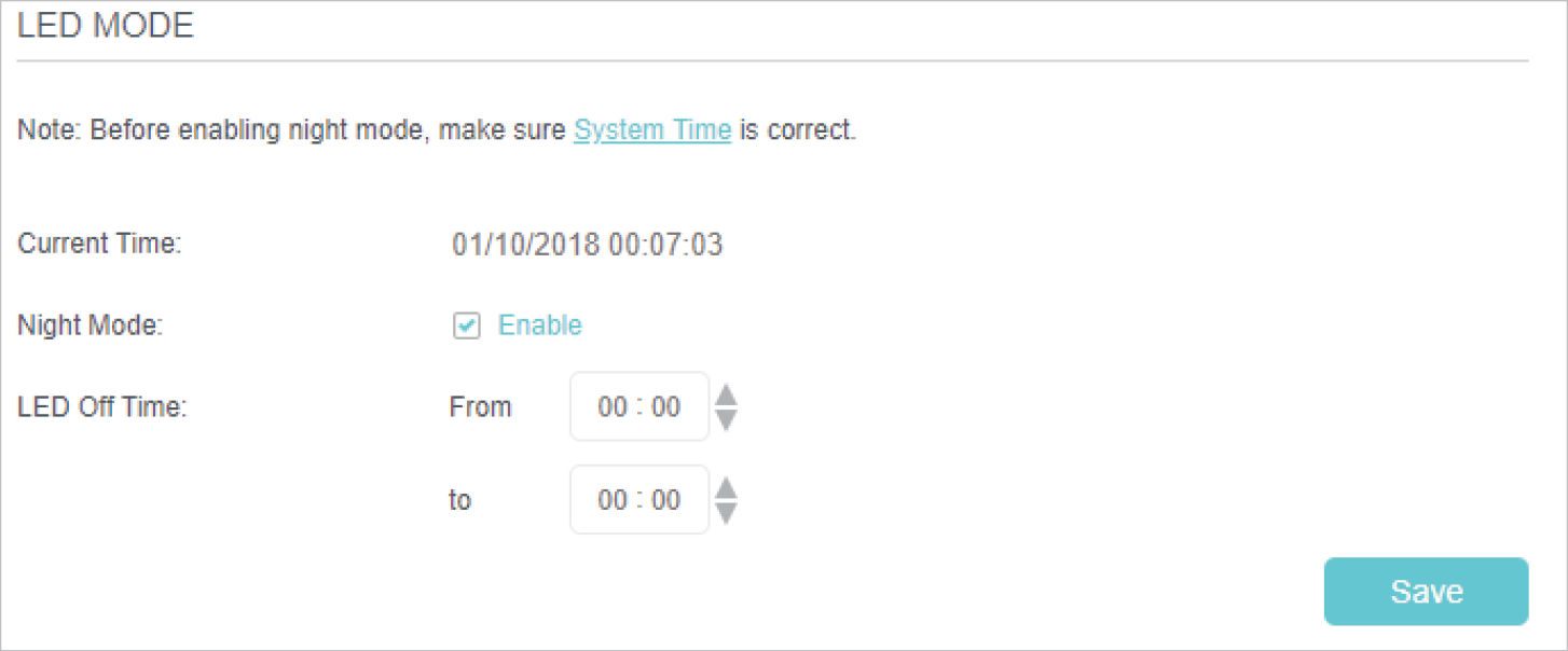📘Note: Once Night Mode is enabled, the LEDs will be off during the specified period everyday without affecting the router’s performance.