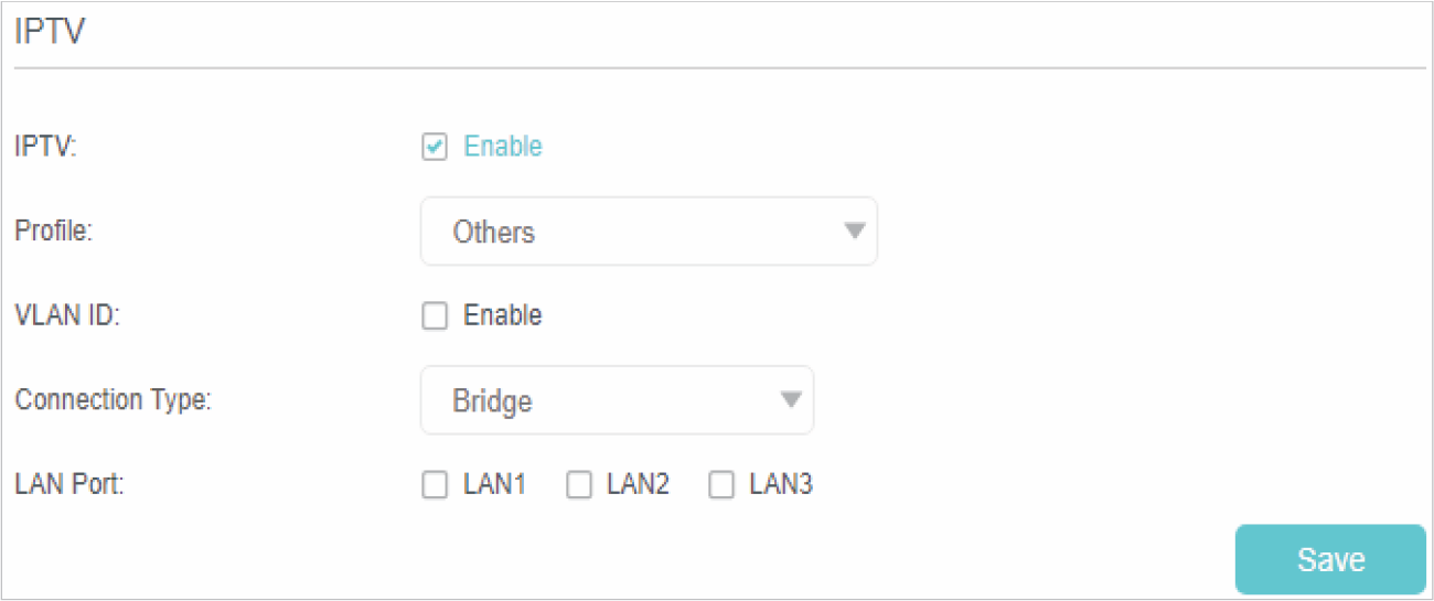 In wireless router mode, you can set up your router for an IPTV connection. To enable and configre IPTV, go to Advanced > IPTV.