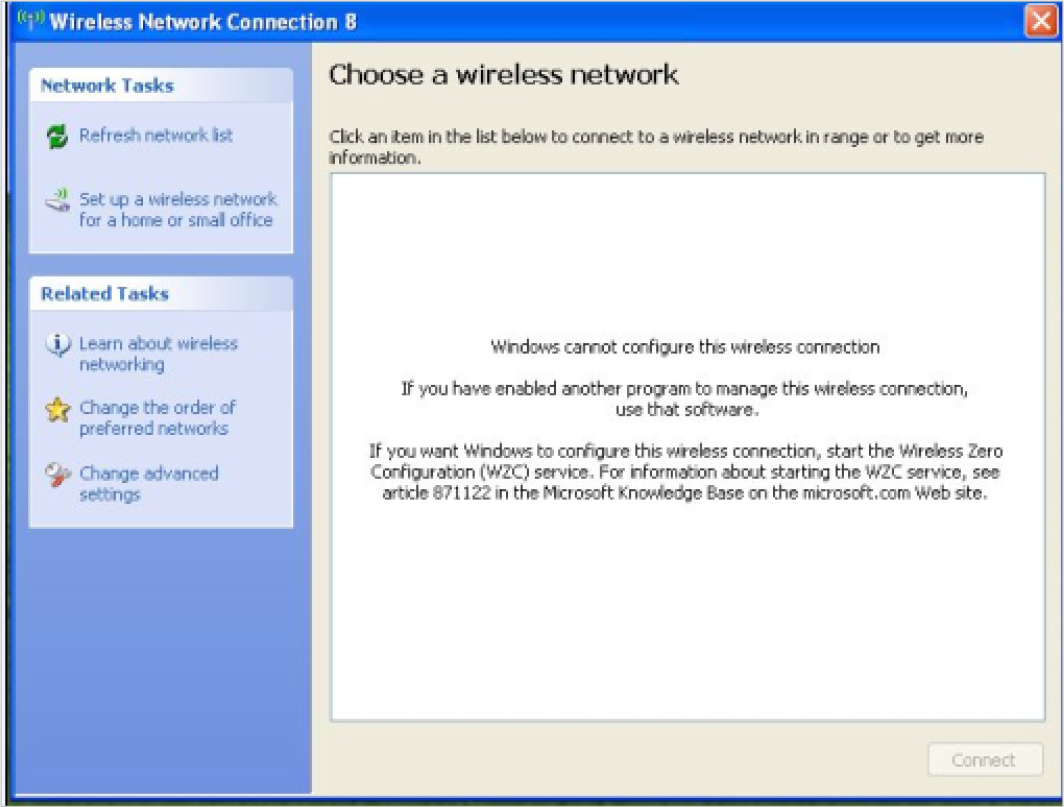 ) If you see the message Windows cannot configure this wireless connection, this is usually because windows configuration utility is disabled or you are running another wireless configuration tool to connect the wireless.