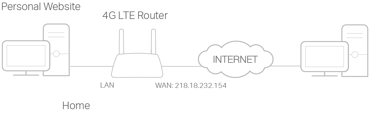 Users in the internet can enter http:// WAN IP (in this example, enter http:// 218.18.232.154) to visit your personal website.