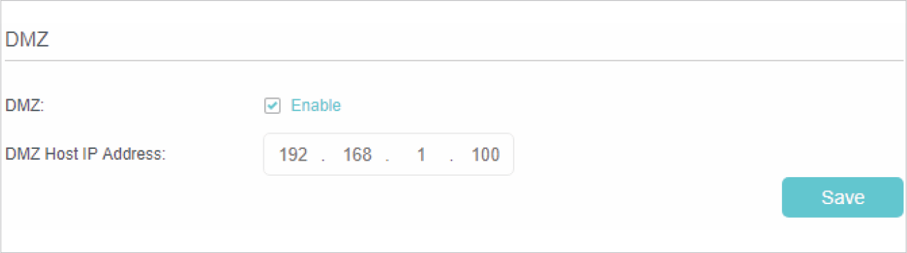 📘Note: DMZ is more applicable in the situation that users are not clear about which ports to open. When it is enabled, the DMZ host is totally exposed to the internet, which may bring some potential safety hazard. If DMZ is not in use, please disable it in time.