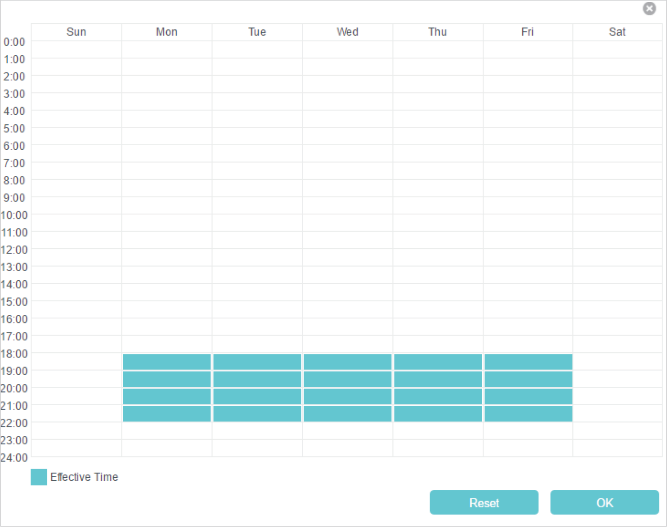 For example, I want to allow my children’s devices (e.g. a computer or a tablet) to access only www.tp-link.com and wikipedia.org, from 18:00 (6PM) to 22:00 (10PM) on weekdays only.