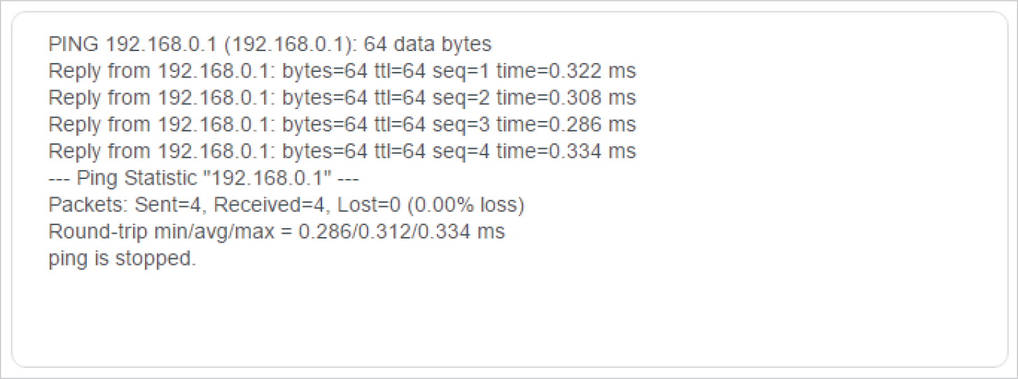 Ping is used to test the connectivity between the router and the tested host, and measure the round-trip time.